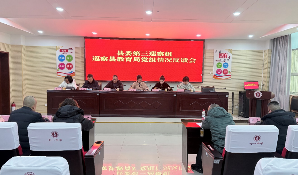 根据县委巡察工作统一安排,2026年1月26日,十五届县委第八轮第三巡察组巡察石棉县教育局党组情况反馈会议召开。会前,县委第三巡察组组长张钋主持召开与县教育局党组书记、局长刘方辉的单独反馈会,传达了县委书记周船关于巡察整改工作的重要讲话精神。反馈会上,县委常委、县总工会主席张喆出席会议并讲话,县委巡察工作领导小组成员、县纪委副书记、县监委副主任刘晓东提出整改工作要求,张钋通报了巡察情况和反馈意见,刘方辉主持会议并作表态发言。县委第三巡察组相关人员、县教育局机关干部和全县各学校党组织书记、校(园)长共40余人参加会议。