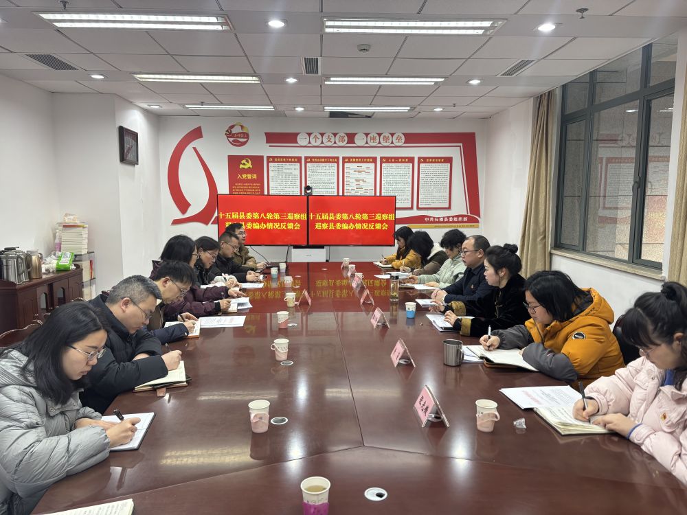 根据县委巡察工作统一安排,2026年1月26日,十五届县委第八轮第三巡察组巡察县委编办情况反馈会议召开。会前,县委第三巡察组组长张钋主持召开与县委组织部副部长、编办主任赵敏的单独反馈会,传达了县委书记周船关于巡察整改工作的重要讲话精神。反馈会上,县委常委、组织部部长胥光林出席会议并讲话,县委组织部副部长、县委巡察工作领导小组成员陈瑾提出整改要求,张钋通报了巡察情况和反馈意见,赵敏主持会议并作表态发言。县委第三巡察组副组长陆雪及相关人员和县委编办中层干部14人参加。