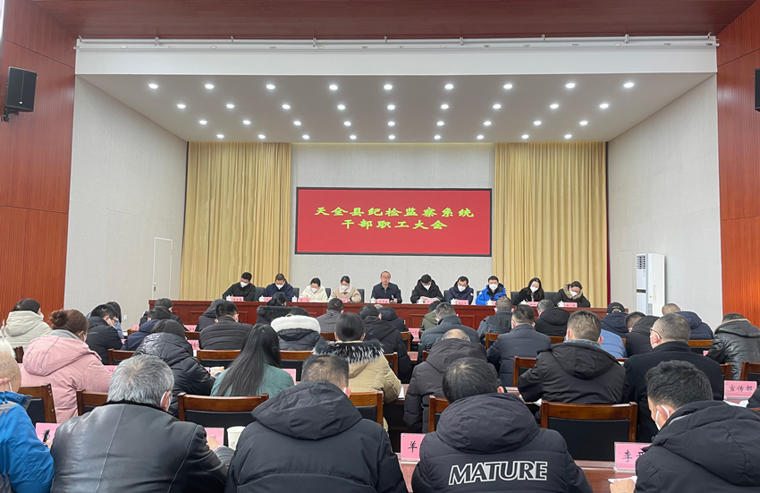 1月18日,天全县纪委监委组织召开干部职工大会,学习传达近期重要会议精神,总结回顾2022年工作,安排部署2023年重点工作。县委常委、县纪委书记、县监委主任张思敏出席会议。